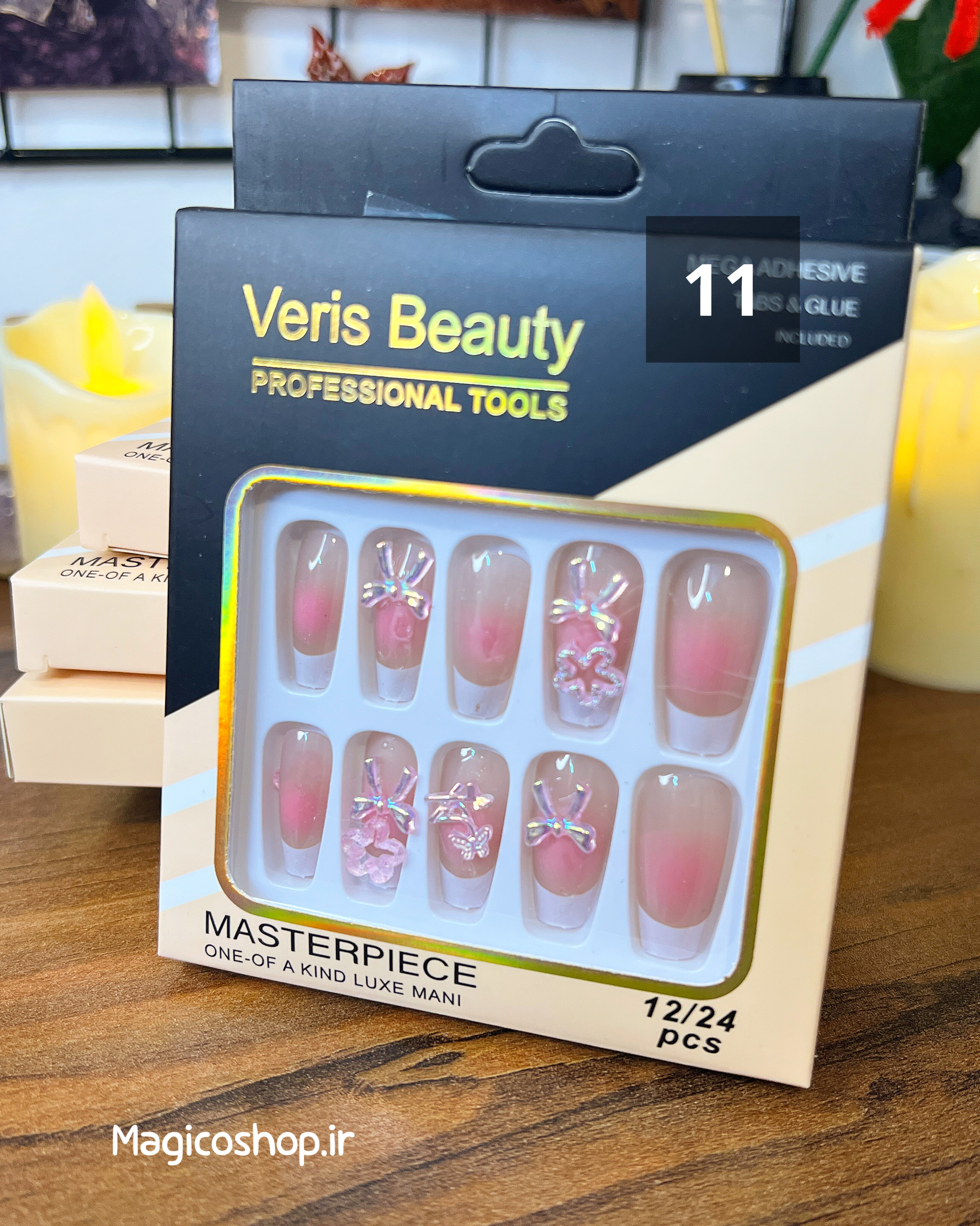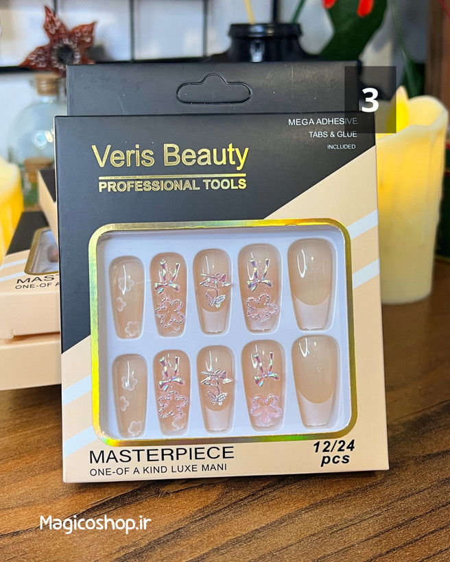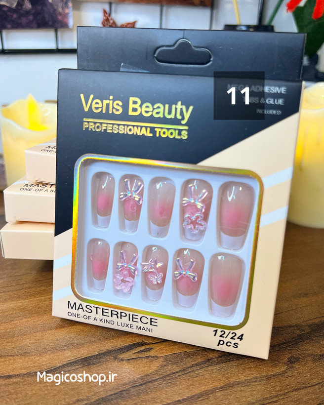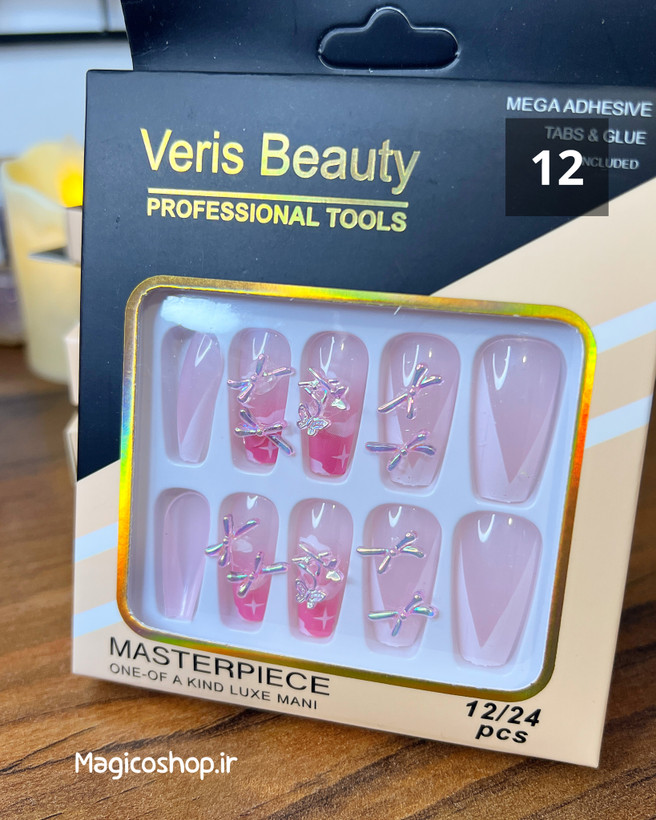 محتویات بسته : 12 عدد ناخن مصنوعی + چسب مخصوص