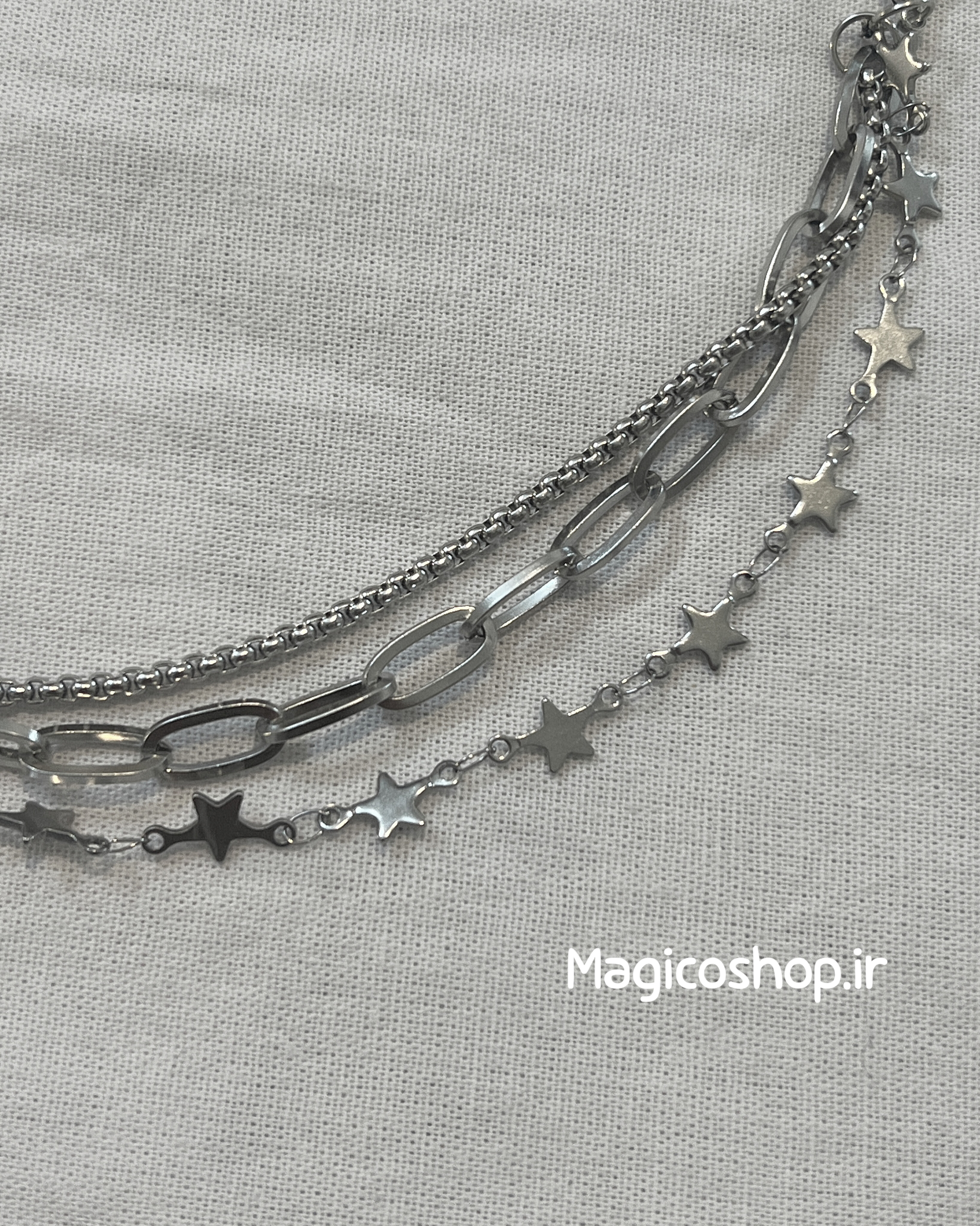 دستبند سه لاین ستاره 🌟 ✮⋆˚₊ .. ⋆ تا صدسال دیگه هم تغییر رنگ نمیده. ☁️ کاملا استیل و رنگ ثابت ✦ فری سایز با سایزر ✦